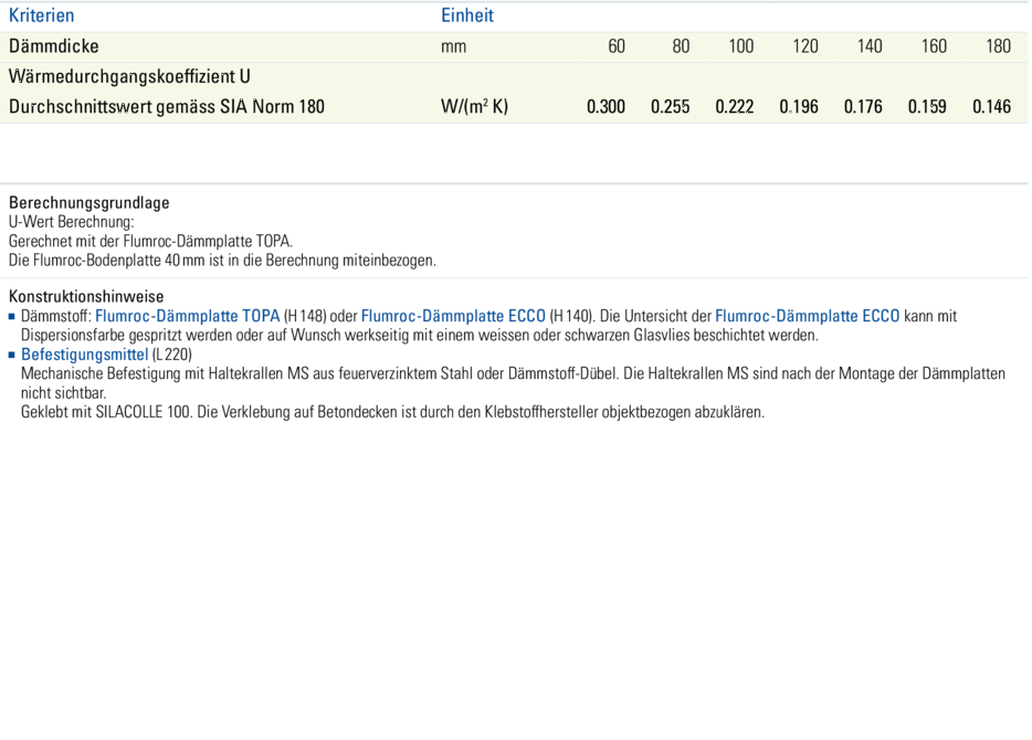- Flumroc-Dämmplatte TOPA (H148) oder