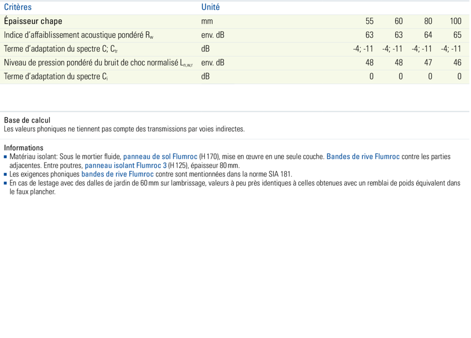 Poutraison apparente avec faux plancher, isolation phonique sous chape, revêtement inférieur rigide