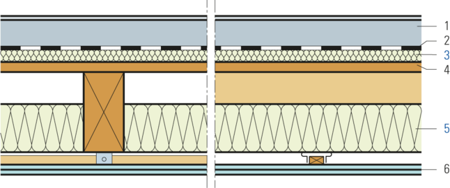 Soffitto di travi in legno, elemento per soffitte FERMACELL, travi a vista