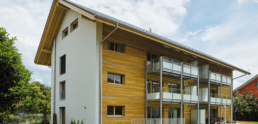 Dieses als Holzbau ausgeführte Mehrfamilienhaus wurde mit Schweizer Steinwolle gedämmt. Als vollflächige Fassadendämmung und Putzträgerplatte wurde die Flumroc-Dämmplatte LENIO eingesetzt. Sie wird mittels Breitrückenklammern montiert und anschliessend verputzt. Die Rückseite des Hauses wurde mit einer hinterlüfteten Holzfassade bekleidet. Das Haus wurde mit dem Herkunftszeichen Schweizer Holz ausgezeichnet. Der Anteil Schweizer Holz beträgt 82 Prozent, jener an Konstruktionsholz 100 Prozent.